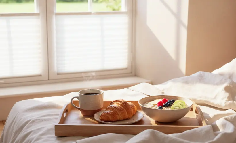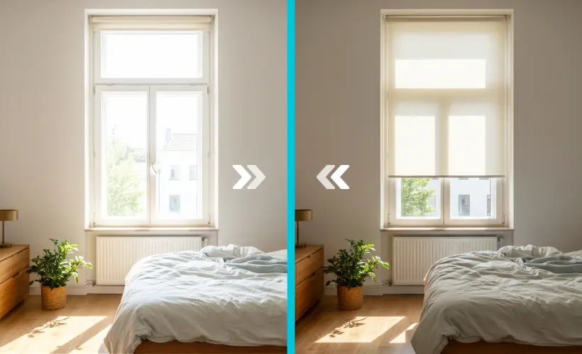 Und apropos Licht: Nicht immer will man morgens die volle Kraft der Sonne im Raum haben. Die ESTIKA Tag-Nacht-Rollos helfen dabei, das Licht flexibel anzupassen – sanft gestreut, leicht abgedunkelt oder komplett offen. Du bestimmst, wie dein Morgen aussieht.