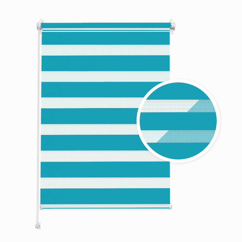 Day and Night Blind. Color: Azure Coast. No-drill installation. Custom-made. Width: 30–150 cm. Height: 120, 150 or 220 cm. Darkening: approx. 50%.