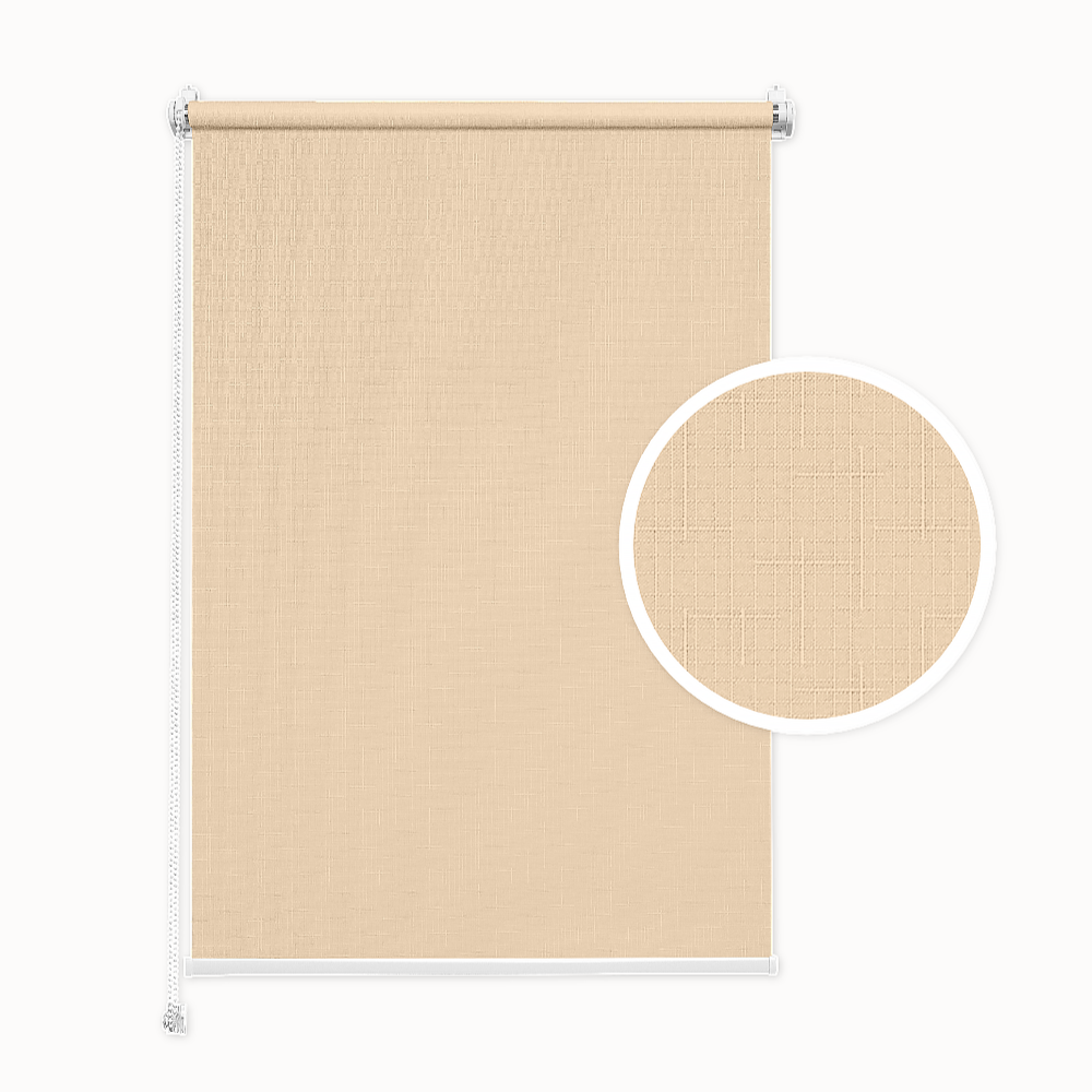 Standard (classic) roller blind. Color: Apricot. Tool-free installation. Made to measure. Width: 30–150 cm. Height: 150 or 220 cm. Light filtering: approx. 50%.