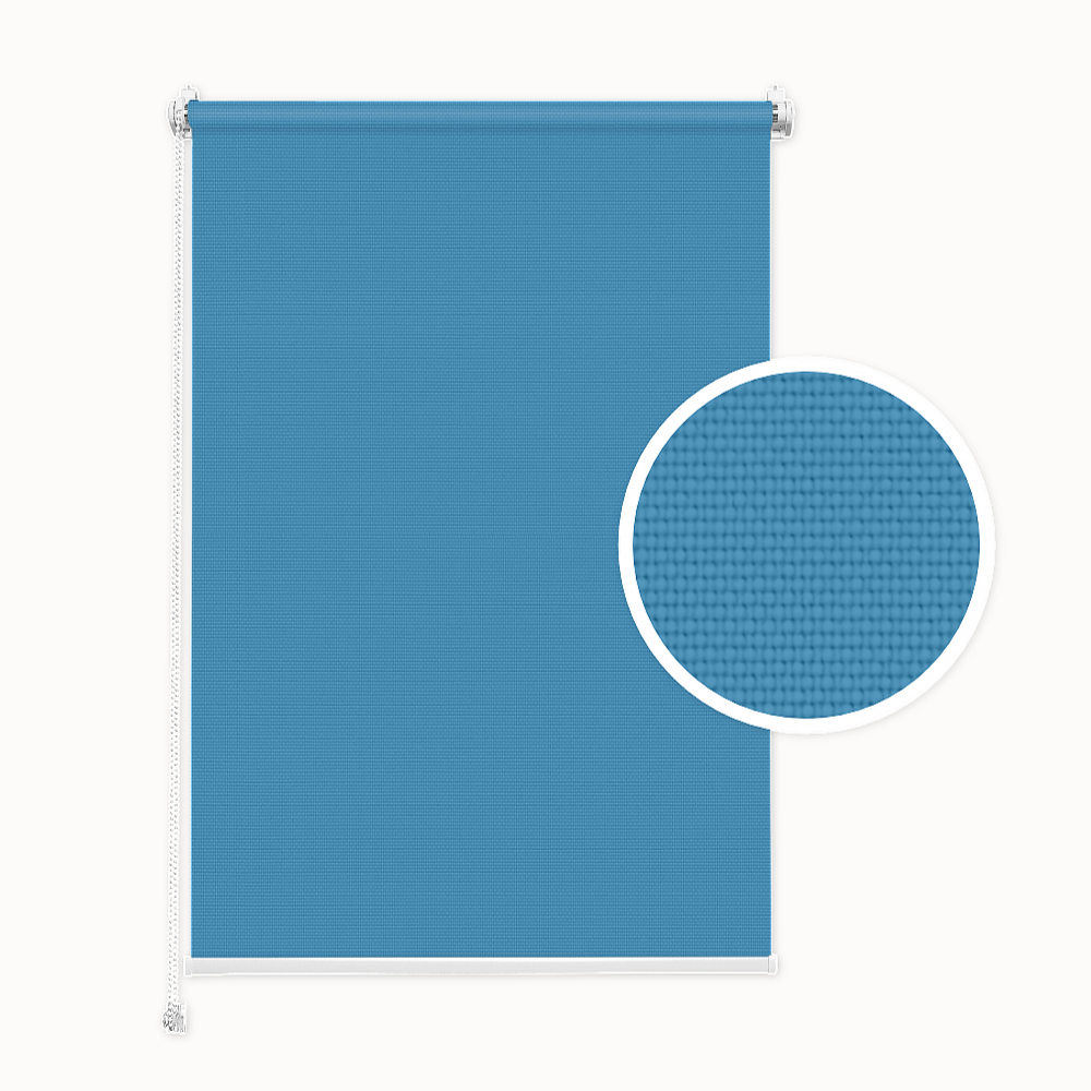 Standard (classic) roller blind. Color: Blue Lagoon. Tool-free installation. Made to measure. Width: 30–150 cm. Height: 150 or 220 cm. Light filtering: approx. 50%.