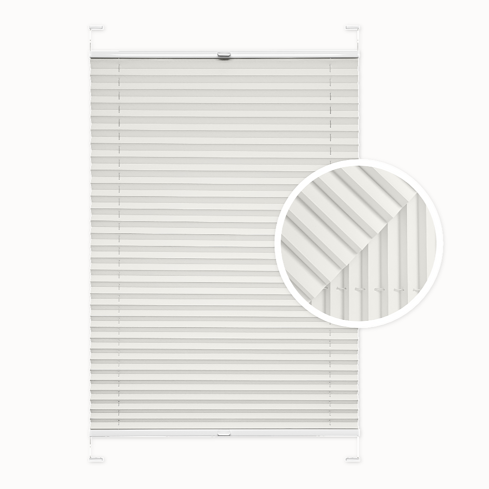 Plissee-Fenster Rollo. Perle Farbe. Invasiver oder nicht-invasiver Einbau. Maßgeschneidert. Breite: 30-140 cm. Höhe: 40-230 cm. Verdunkelung: ca. 50%.
